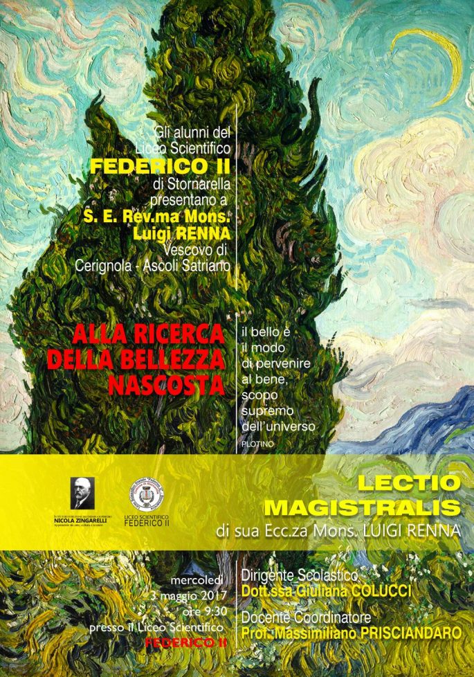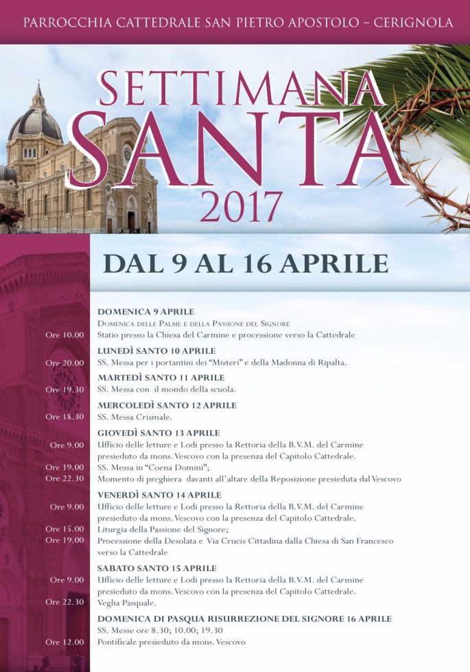 Coraggio, cari Cerignolani, siate degni della vostra tradizione di popolo di lavoratori, di popolo che ama e difende i diritti, di gente che sa la durezza dell’emigrazione, che ama il Vangelo di quel Bambino che la Madonna di Ripalta annuncia e incarna. Quando vedrete il Centro “Santa Giuseppina” capirete. Ma abbiate anche occhi per vedere la carità e il bene che si fa quotidianamente, negli oratori che in questi giorni strappano i bambini alla strada, nei centri sociali, nelle associazioni ecclesiali e laiche che aiutano centinaia di persone.