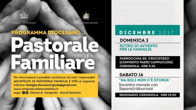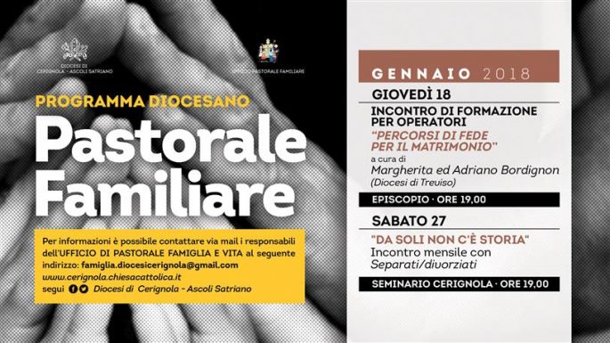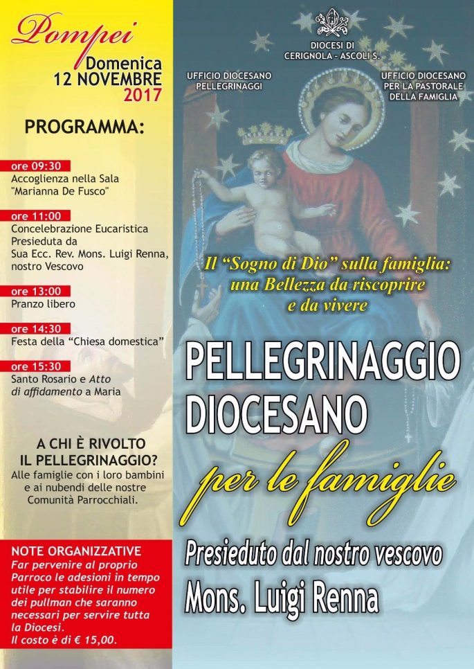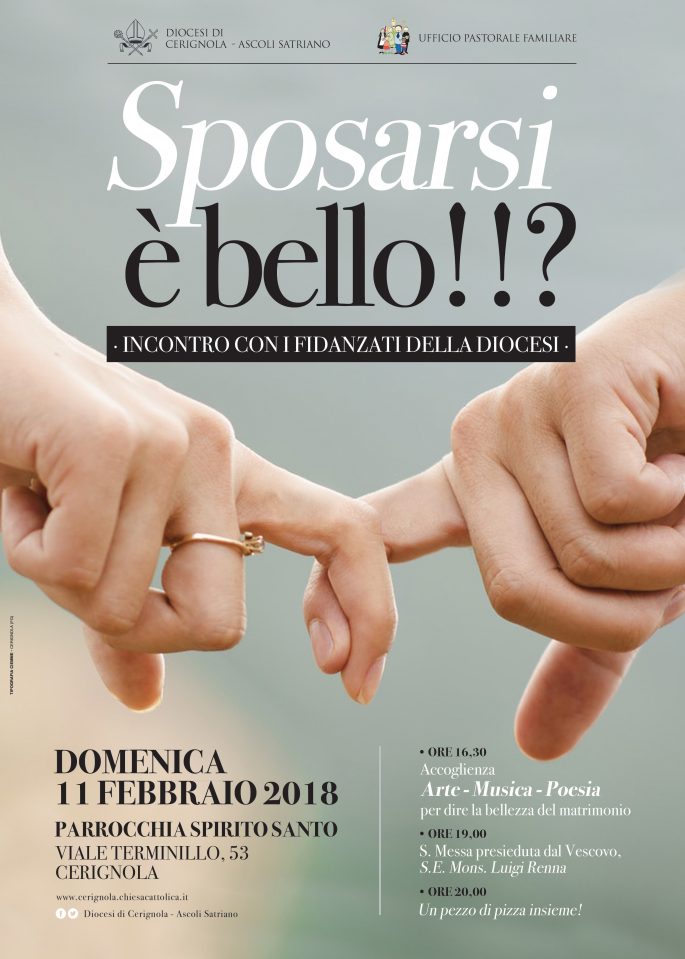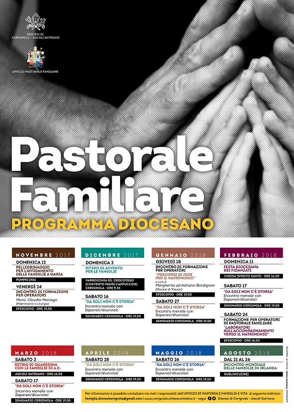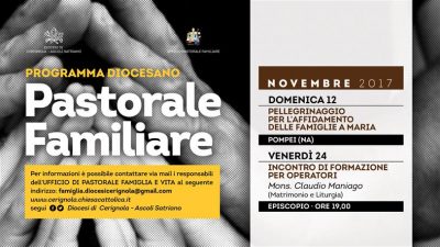 Domenica 28 Ottobre 2018, festa diocesana della Famiglia, alle ore 16.30 nei locali in cui ha mosso i primi passi la comunità parrocchiale di San Leonardo, oggi intitolati a S. Gianna Beretta Molla, il Vescovo Luigi Renna, l’Ufficio diocesano di Pastorale Familiare nelle persone di don Gerardo Rauseo, Mattea Belpiede e Paolo Rubbio sono lieti di invitare l’intera comunità diocesana per inaugurare il Consultorio Diocesano intitolato a Zelia e Luigi Martin, i Santi genitori di Santa Teresina del Bambino Gesù. La Chiesa diocesana è felice di offrire alle comunità parrocchiali e alla Città di Cerignola questo importante strumento di crescita sociale, spirituale e culturale. Vi aspettiamo numerosi.