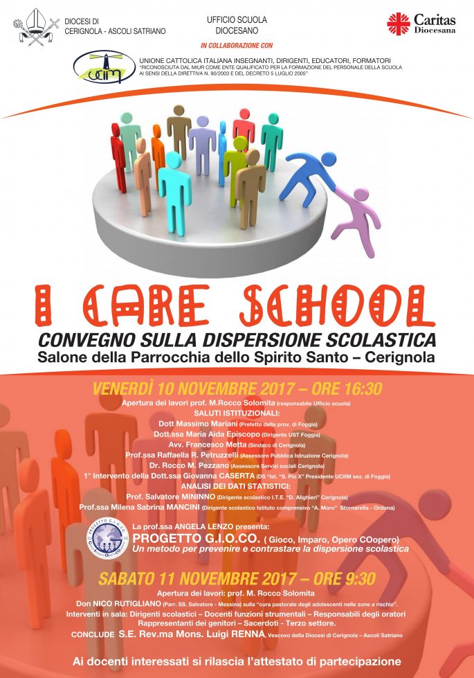 Nella giornata del 16 novembre, alle ore 17, nel salone della parrocchia dello Spirito Santo di Cerignola, dopo l’introduzione del prof. Solomita e il saluto della prof.ssa Raffaella Petruzzelli, Assessore alla Cultura del Comune di Cerignola, interverranno i rappresentanti delle Forze dell’Ordine, il prof. Paolo Contini, docente di Sociologia nell’Università degli Studi di Bari, e don Roberto Massaro, docente di Teologia Morale nella Facoltà Teologica Pugliese, per guidare i partecipanti alla scoperta delle ricadute del web sui giovani. Il giorno seguente, l’intervento di Sua Ecc. Mons. Luigi Renna, Vescovo di Cerignola-Ascoli Satriano, anticiperà i Gruppi di Lavoro coordinati dai Dirigenti Scolastici dott.ssa Maria Rosaria Albanese, dott.ssa Loredana Tarantino, dott. Salvatore Mininno.